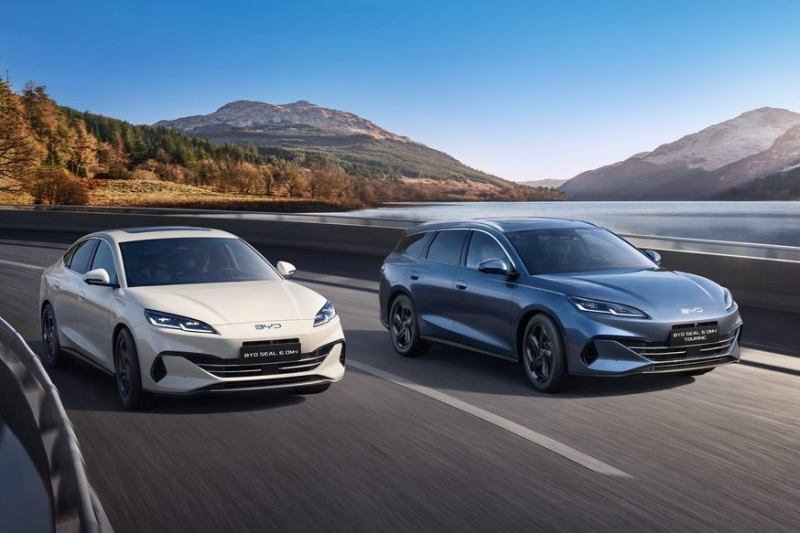 Компания BYD расширяет свой модельный ряд в Европе – совсем скоро покупателям станут доступны четырехдверка и «сарай» с фирменной гибридной установкой DM-i. В некоторых странах уже объявлены цены. Китайская фирма BYD уже давно продает свои «электрички» и гибриды практически во всех регионах мира, включая Европу. И вот сегодня «старосветское» подразделение анонсировало расширение модельного ряда – раскрыты характеристики родственных подзаряжаемых гибридных седана BYD Seal 6 DM-i и универсала BYD Seal 6 DM-i Touring. Напомним, в родном Китае машины этого семейства представлены с индексом 06: бензоэлектрическая четырехдверка там стартовала еще в прошлом году, а «сарай» с двойной «фамилией» Travel Edition вышел на домашний рынок летом 2025-го. К слову, у седана в Китае еще есть полностью электрическая версия, однако для Европы электрокар не заявлен – по крайней мере, пока. В плане дизайна экспортные машины от версий для КНР ничем не отличаются. А если не принимать во внимание тип кузова, то внешне BYD Seal 6 DM-i и Seal 6 DM-i Touring в целом повторяют друг друга. Среди особенностей экстерьера – фары с диодными L-образными ходовыми огнями, полускрытые ручки дверей и единая плашка задних фонарей. В салоне установлены раздельные экраны приборки (8,8 дюйма) и мультимедиа (12,8 или 15,6 дюйма). Любопытно, что несмотря на одинаковый дизайн, адресованный Европе универсал почему-то чуть компактнее версии для КНР: его длина составляет те же 4840 мм, что и у седана, тогда как показатель пятидверки для Китая равен 4850 мм. Колесная база едина для всех вариантов – 2790 мм. Объем багажника предназначенного для Старого Света седана BYD Seal 6 DM-i – от 491 до 1370 литров, универсала BYD Seal 6 Touring DM-i – от 500 до 1535 литров. В Европе базовые машины имеют 17-дюймовые колеса, более дорогим исполнениям положены 18-дюймовые. Силовая установка DM-i евроверсий включает бензиновый атмосферник 1.5 (98 л.с.) и электромотор мощностью 197 л.с. (у моторов машин для Китая другие настройки). Начальные исполнения укомплектованы батареей емкостью 10,1 кВт*ч, остальные варианты имеют аккумулятор на 19 кВт*ч. Только на электротяге седан с младшей батареей проедет примерно 55 км по циклу WLTP, универсал – 50 км. Со старшим аккумулятором – 105 и 100 км соответственно. В списке оборудования самых дешевых комплектаций значатся камера заднего вида, адаптивный круиз-контроль, системы мониторинга «слепых» зон, удержания в полосе движения и распознавания дорожных знаков. Дорогие версии – это подогрев руля и передних сидений (кресла – еще и с вентиляцией), панорамный люк, две площадки для беспроводной зарядки гаджетов, камеры кругового обзора. Публичную премьеру BYD Seal 6 DM-i и BYD Seal 6 DM-i Touring справят на выставке IAA Mobility в Мюнхене, которая откроется через несколько дней. При этом в некоторых странах уже принимают заказы на новинки. Например, во Франции гибридный седан BYD стоит 38 490 – 43 080 евро (около 3,6 млн – 4 млн рублей по текущему курсу), за универсал там просят 39 990 – 44 180 евро (3,8 млн – 4,14 млн рублей). Для сравнения, подзаряжаемый гибридный лифтбек Skoda Superb французам обойдется минимум в 53 360 евро (5 млн рублей), и почти столько же во Франции просят за бензоэлектрический универсал Skoda Superb Combi.